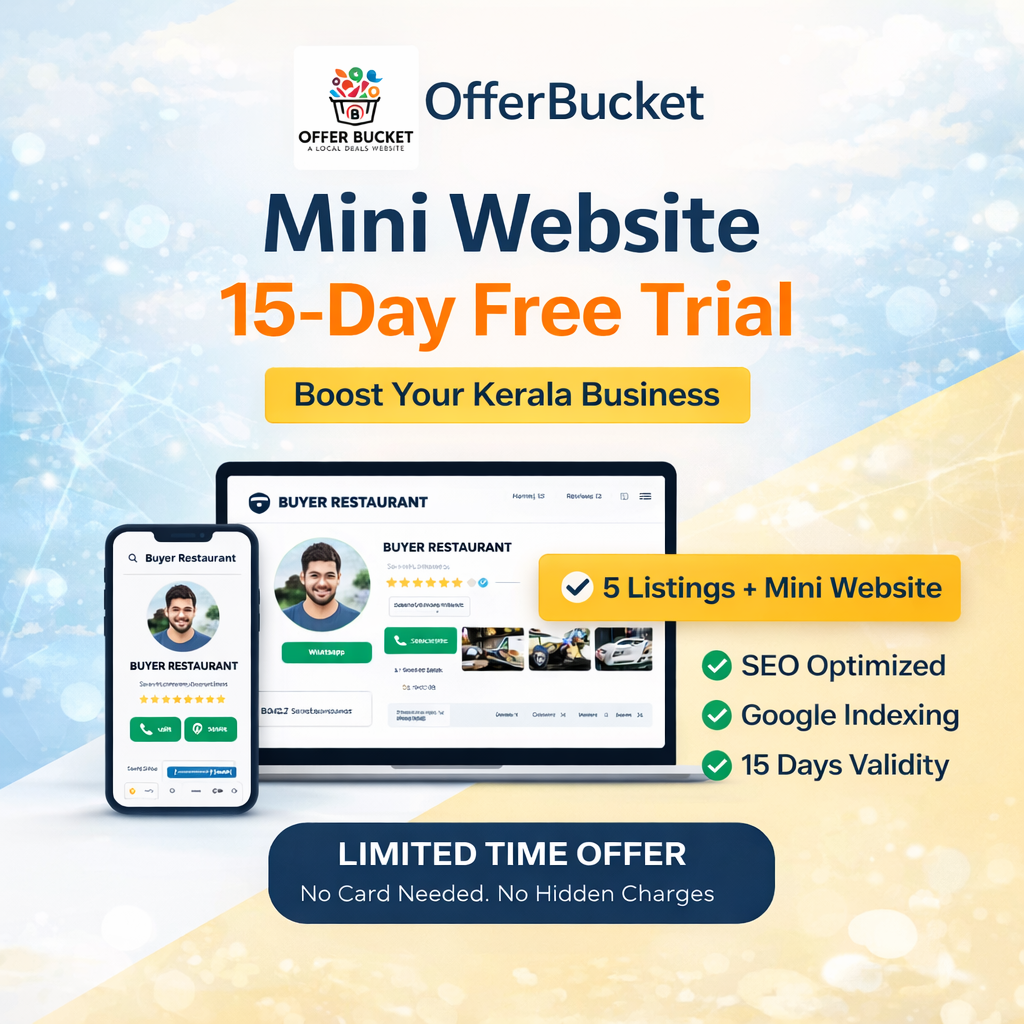 Looking for a free business listing Kerala to take your shop or service online? OfferBucket provides a professional Mini Website Free Trial that helps local businesses create structured digital presence with SEO foundation and social media integration.